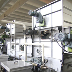 4、每個水洗箱都配有動能過濾箱循環泵和機外加熱器組成的循環系統,將雜物及時排出機外。